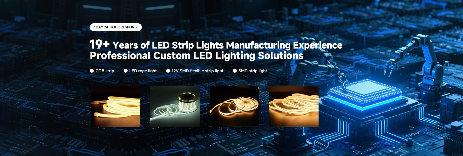 Productos principales:Tira COB, luz de cuerda LED, tira de luz flexible SMD de 12V, tira de luz SMD